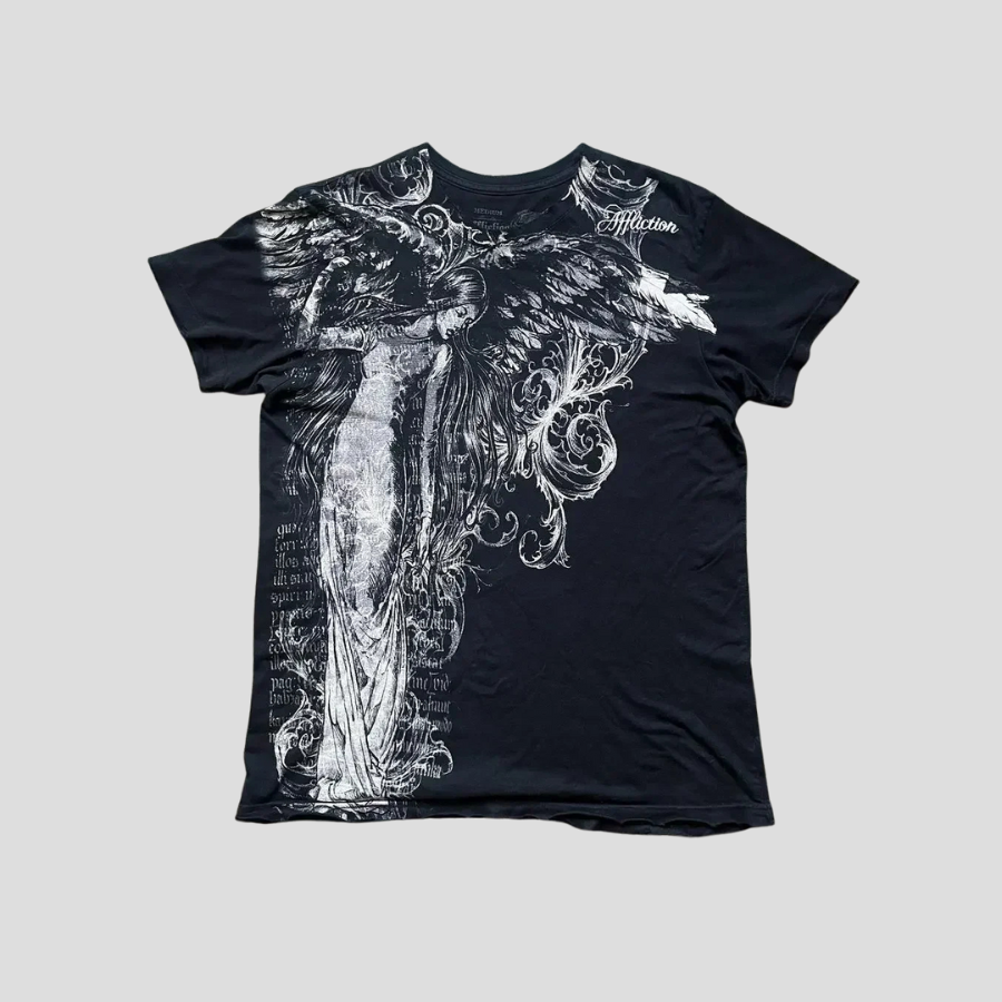 Affliction Gothic T-shirt with Angel Figure and Wings