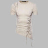 Beige Asymmetric Punk Lace-Up T-Shirt