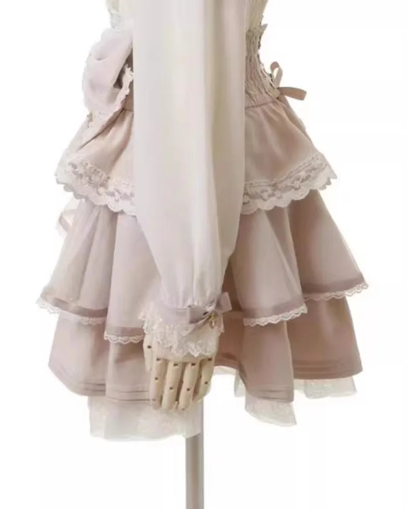 Beige Jirai Kei Skirt with Bow and Lace Trim View options