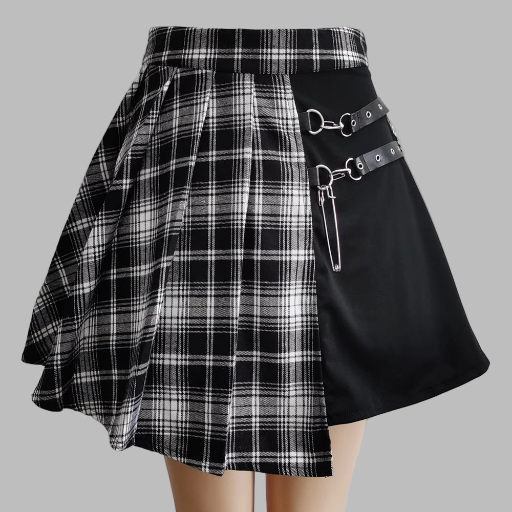 Black and White Grunge Punk Rock Skirt with Straps and Studs