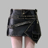 Black Asymmetrical Leather Steampunk Skirt with Straps and Buckles