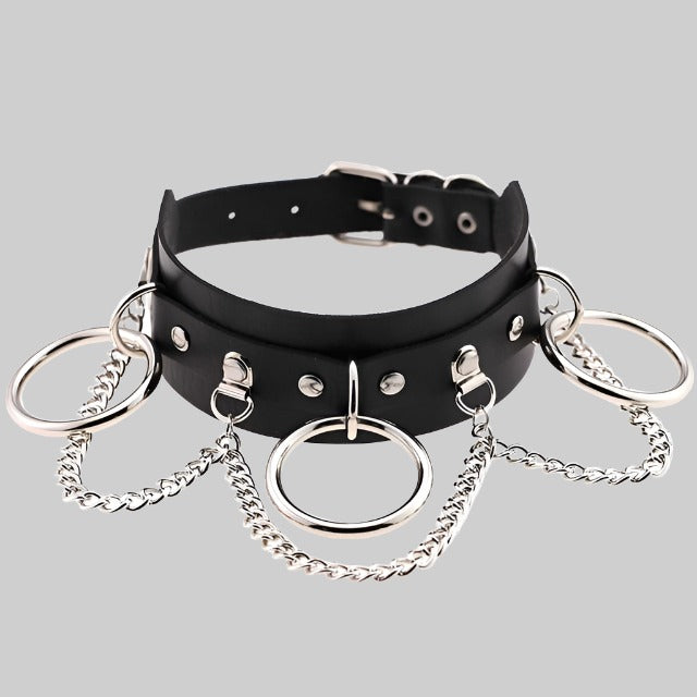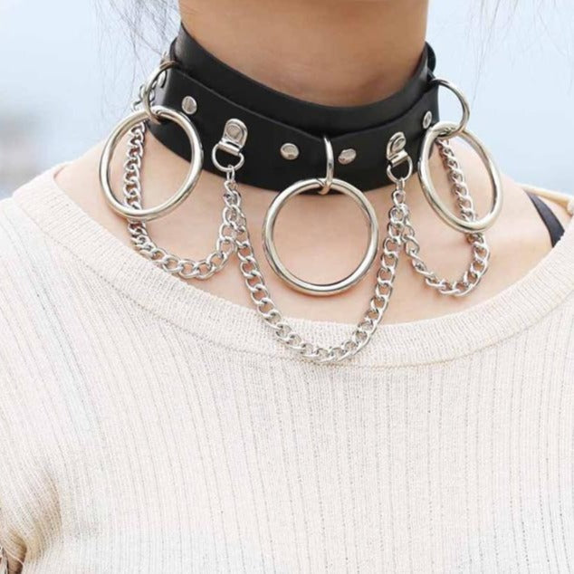 - Chains and steel ring are integrated to add a touch of bold, provocative style