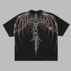 Black Death Metal Oversized T-Shirt with Skull Wings