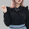 Black Gothic Blouse with Lace Collar and Jirai Kei Heart