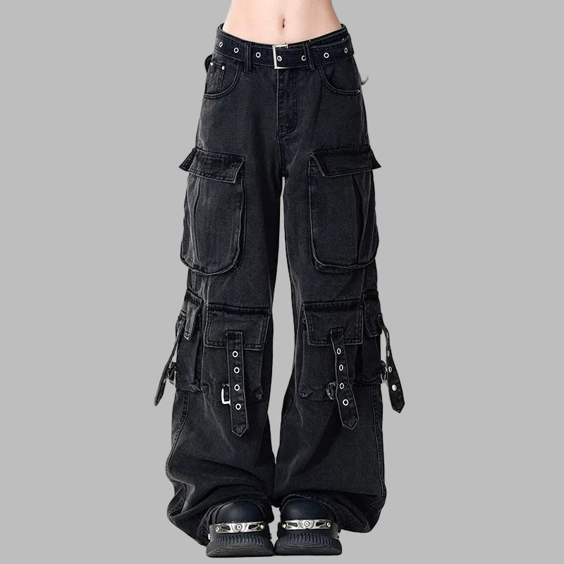 Black Gothic Cargo Pants with Pockets, Straps, and Buckles View options