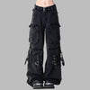 Black Gothic Cargo Pants with Pockets, Straps, and Buckles