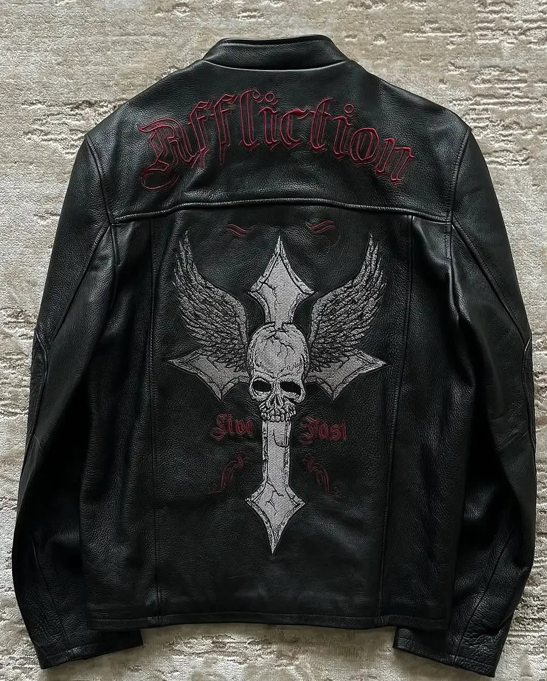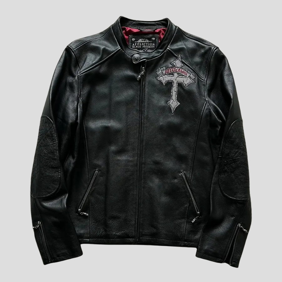 Black Gothic Leather Jacket with Cross