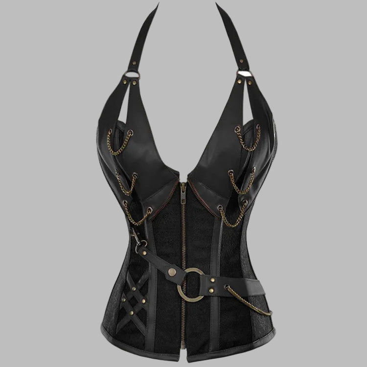 Black Gothic Punk Corset with Chains and Leather Details