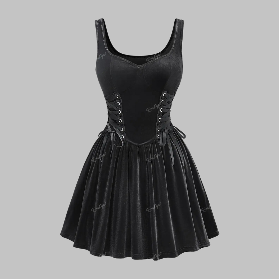 Black Gothic Rock Dress with Corset and Flared Skirt