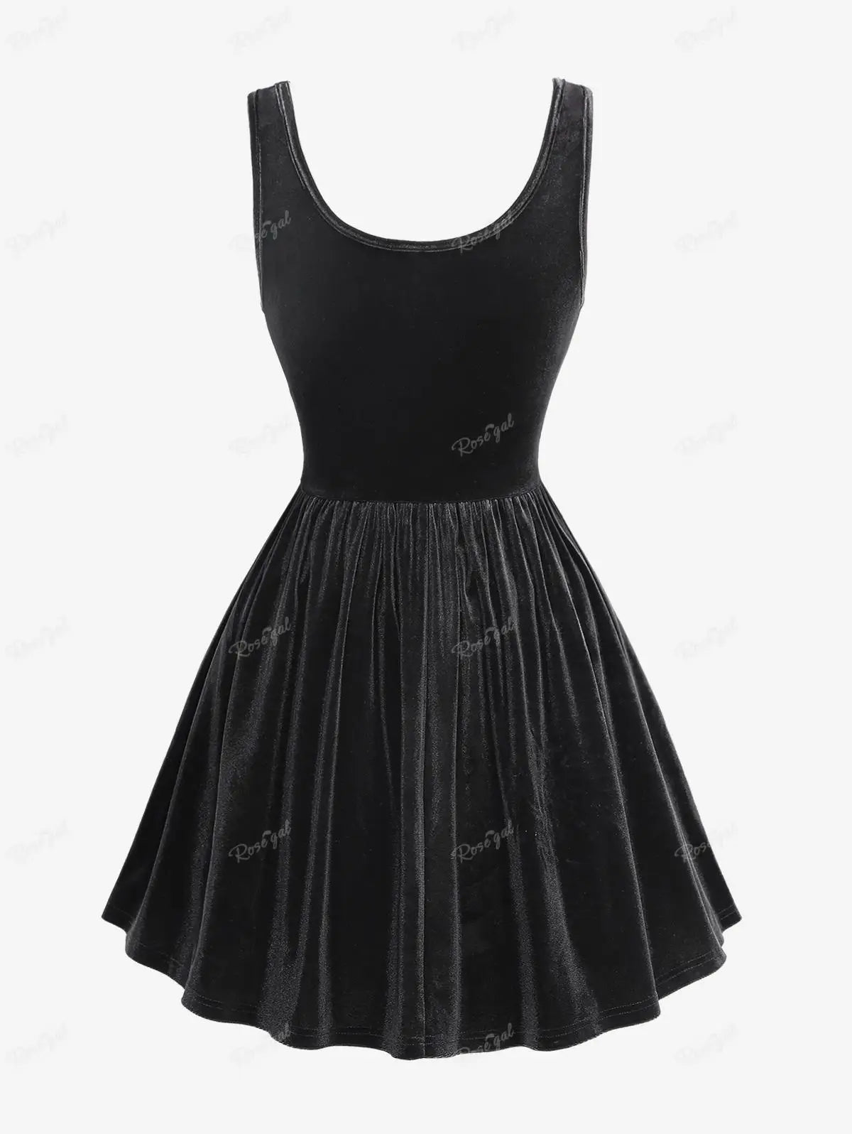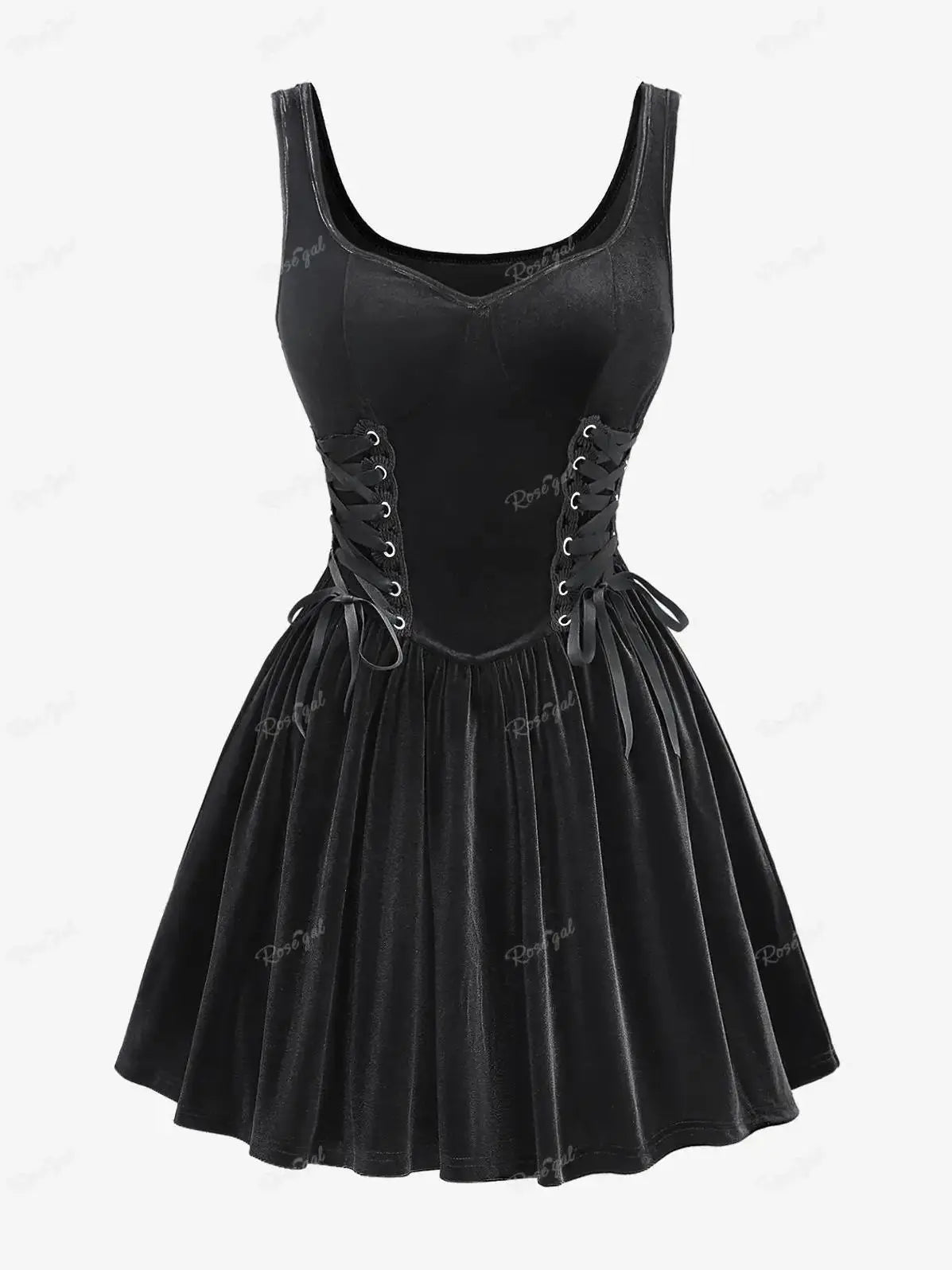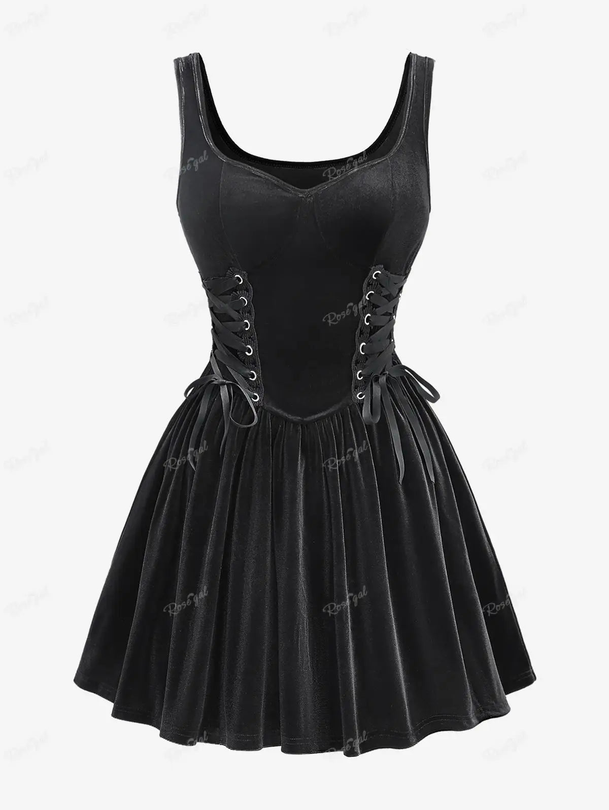 Black Gothic Rock Dress with Corset and Flared Skirt View options