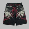 Black Grunge Metal Shorts with Wings and Burgundy Patterns