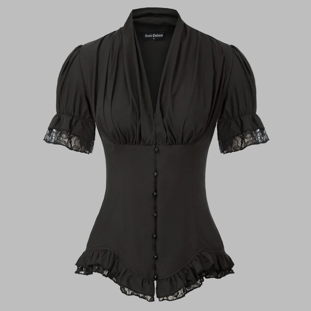 Black Lace Short Sleeve Metal Blouse