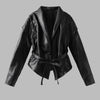 Black Leather Punk Goth Rock Jacket with Laces XXL