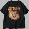 Black Oversized Metal Autism T-Shirt with Skull and Flames
