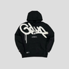 Black Metal Hoodie with White Logo and Text