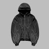 Black Oversized Full Zip Hoodie with Flames Darkwear