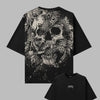 Black Oversized Metal T-Shirt with Skull and Roses