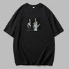 Black Oversized Rock T-Shirt with Hand Gestures