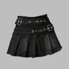 Black Pleated Punk Skirt with Metal Straps and Studs