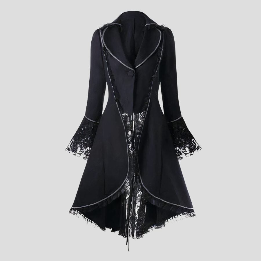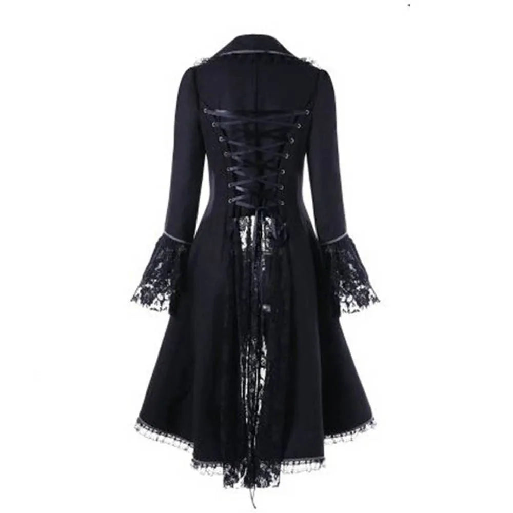 Black Punk Coat with Lace-Up and Lace Sleeves