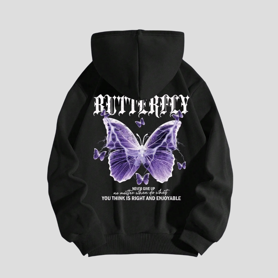 Black Punk Hoodie with Purple Butterflies and Text XXL