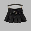 Black Punk Skirt with Belt and Metal Pleats