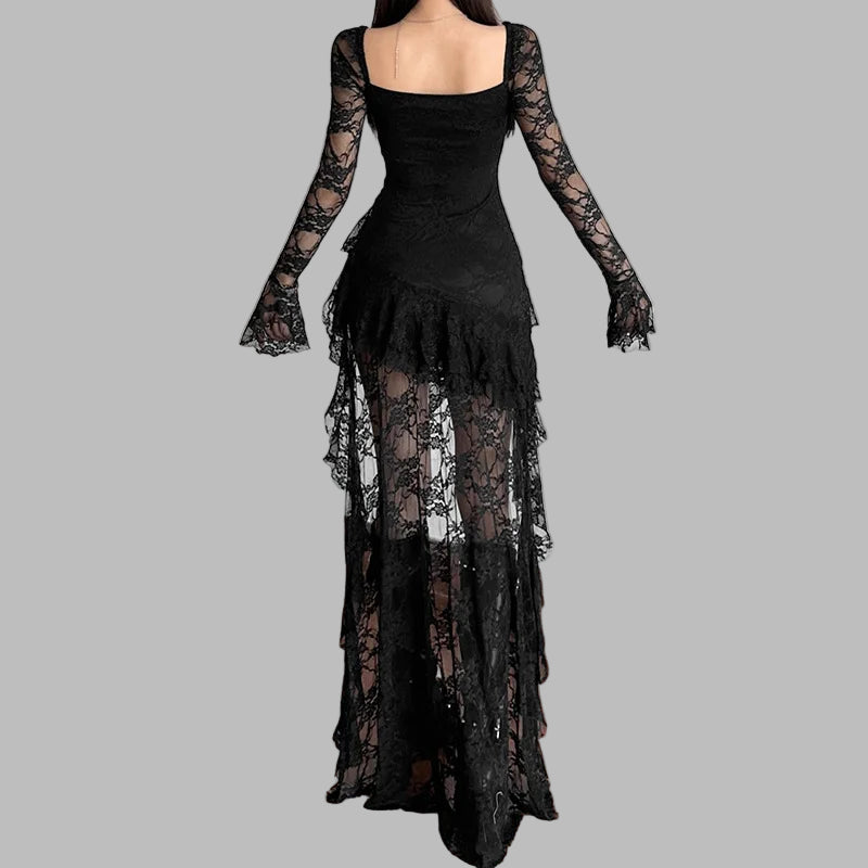 Black Rock Dress with Lace and Asymmetrical Hem
