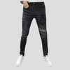 Black Skinny Metal Jeans with Rips and Vintage Print