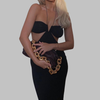 • Sensual Details: Spaghetti straps, a strapless neckline, and cutouts add a touch of seduction and originality to this dress, creating a harmonious balance between allure and elegance.