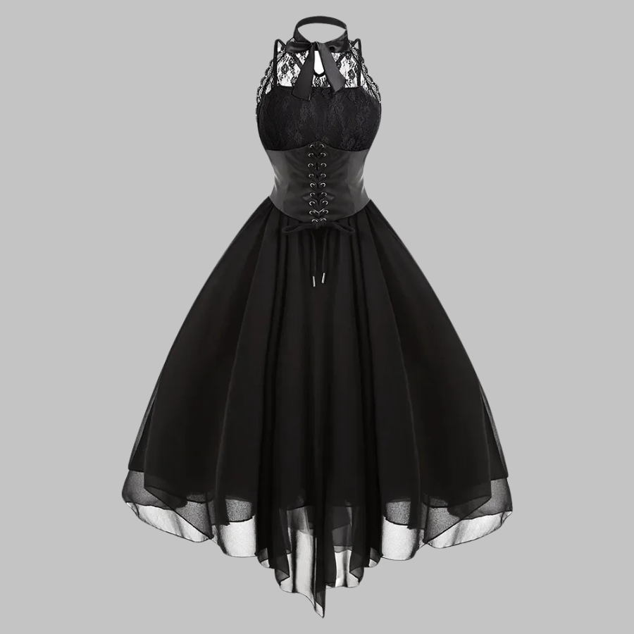 Black Victorian Sleeveless Dress with Lace and Tulle
