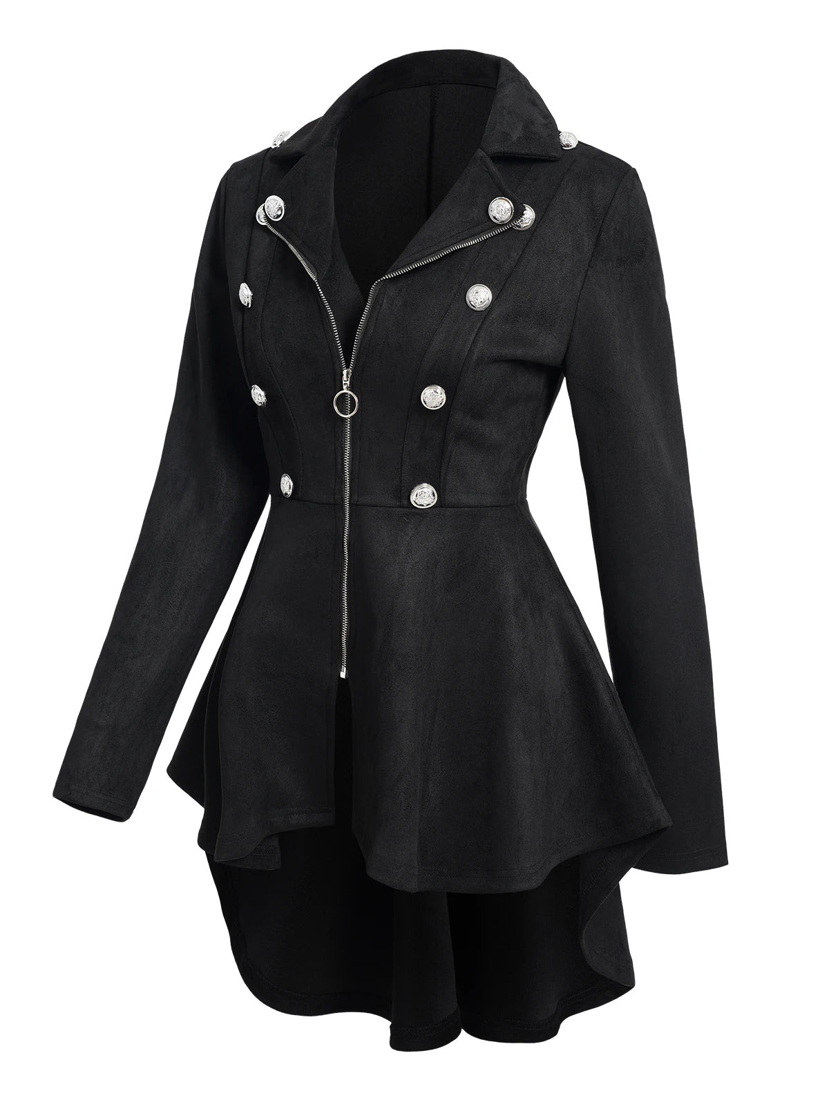 Black Women's Gothic Flared Coat with Buttons and Zipper View options