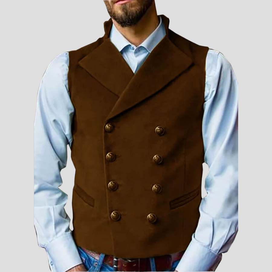 Brown Classic Double-Breasted Steampunk Vest with Buttons