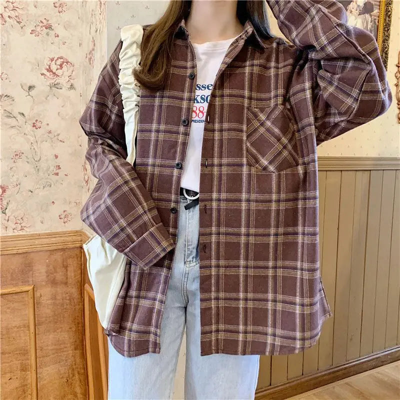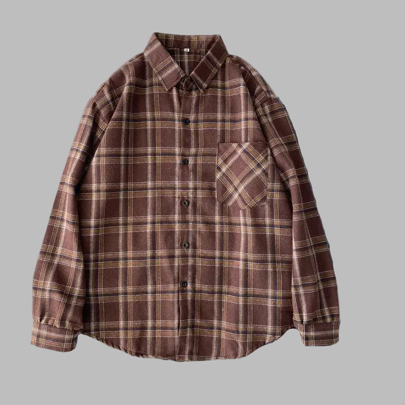 Brown Plaid Flannel Shirt with Pocket Punk Rock