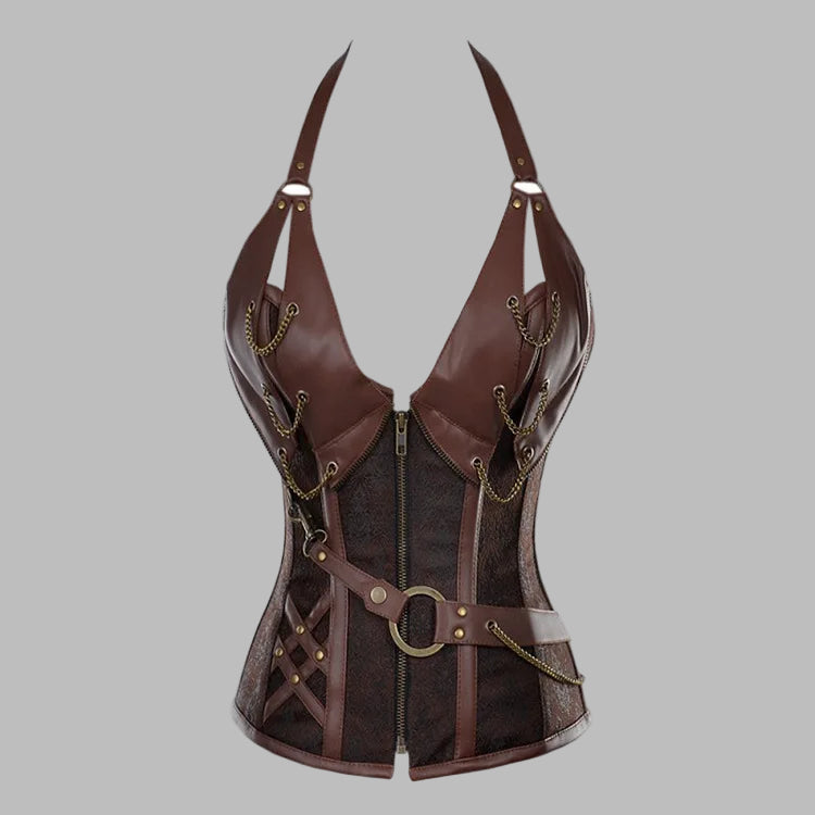 Brown Steampunk Corset with Chains and Leather Straps View options