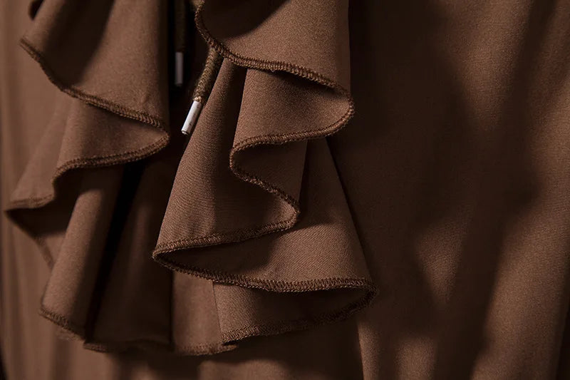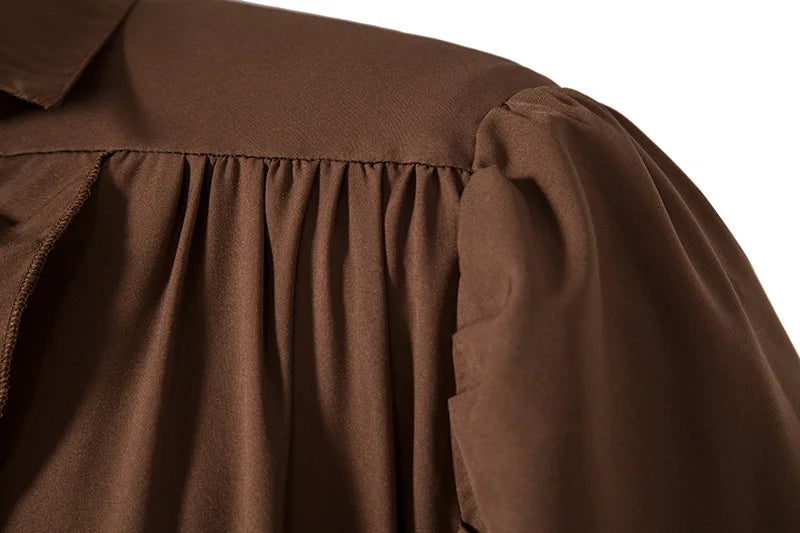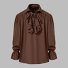 Brown Steampunk Shirt with Ruffle and Lace-Up Retro XXL