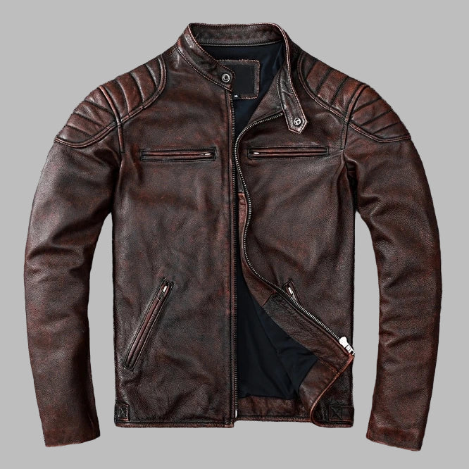 Brown Vintage Leather Rock Jacket with Stitching View options