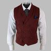 Burgundy Double-Breasted Steampunk Vest with Elegant Black Buttons