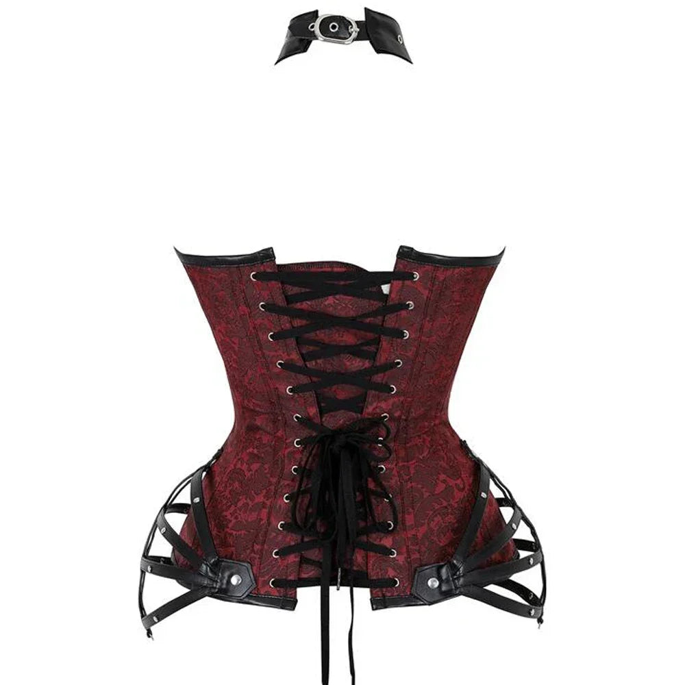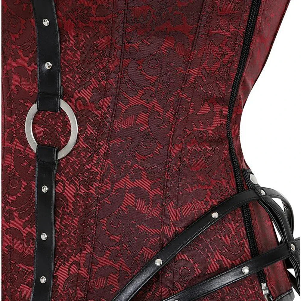 Burgundy Punk Rock Corset with Straps and Metal Buckles 6XL