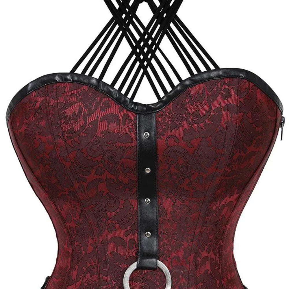 Burgundy Punk Rock Corset with Straps and Metal Buckles View options