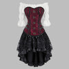 Burgundy Steampunk Corset with Black Lace Hi-Lo Skirt 6XL