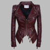 Burgundy Studded Leather Punk Metal Biker Jacket