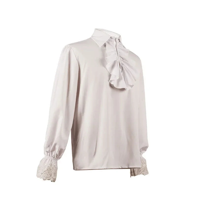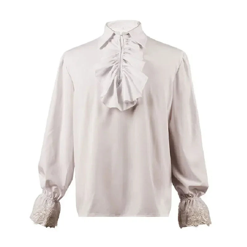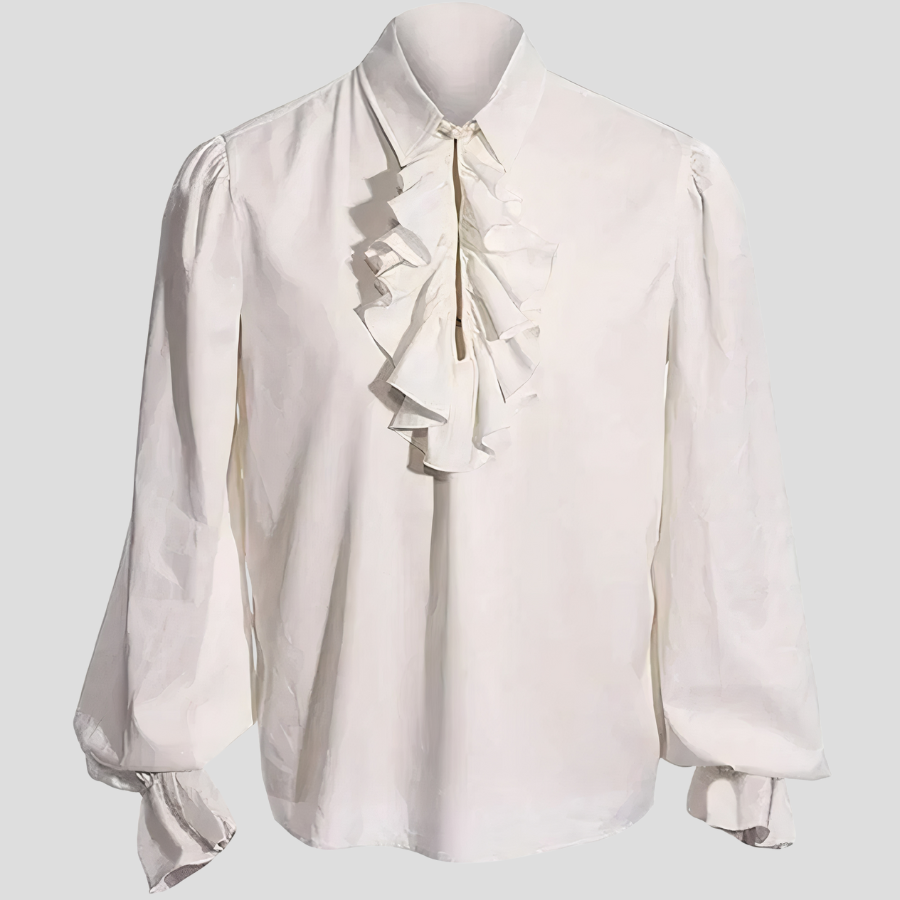 Cream Rock Shirt with Ruffles and Puff Sleeves