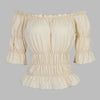 Cream Steampunk Off-Shoulder Blouse with Puffy Sleeves