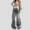 Vintage Green Distressed Cargo Rock Jeans with Pockets