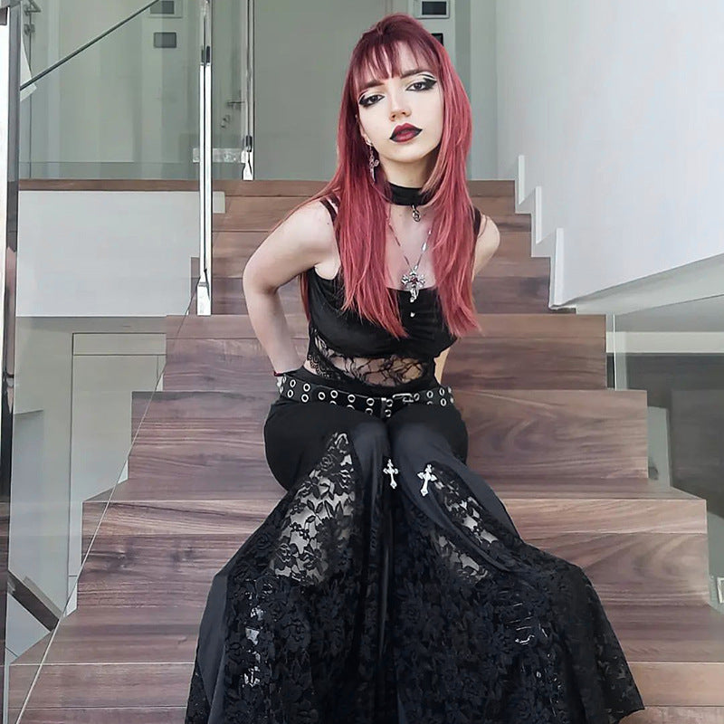 • Subtle Details: Decorative cut-out effect details add mystery to these pants. The hollow out adds a subtle gothic accent, perfectly complementing the overall look of the garment.