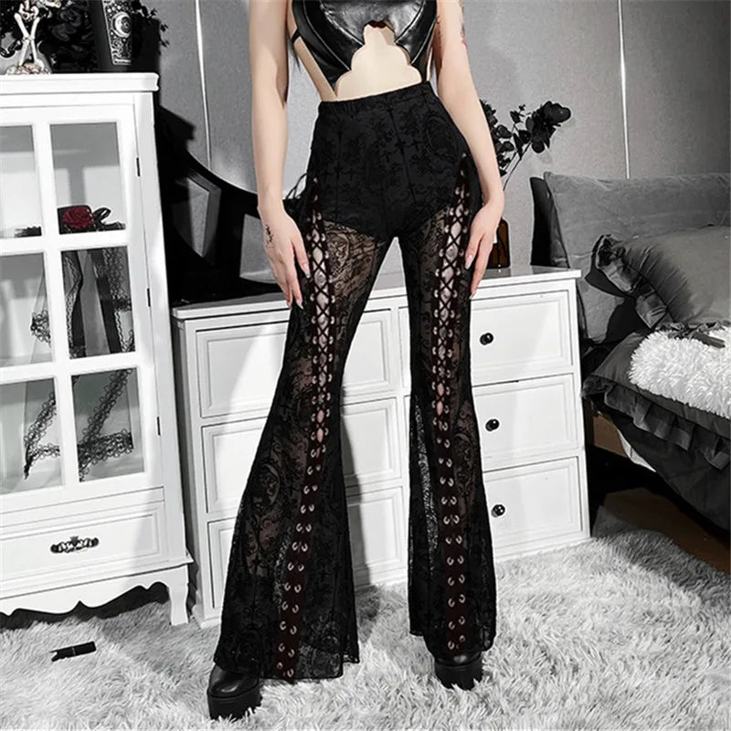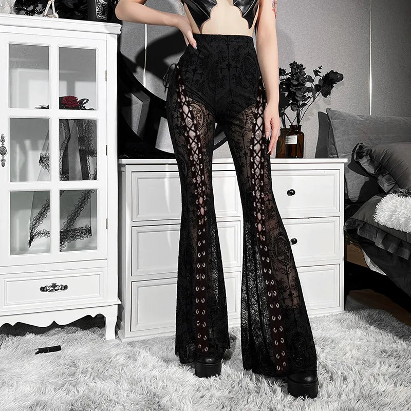 Flared Gothic Black Lace Pants – Dark Mall Style
