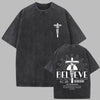 Gothic Oversize Grunge T-shirt with Cross and Believe Print