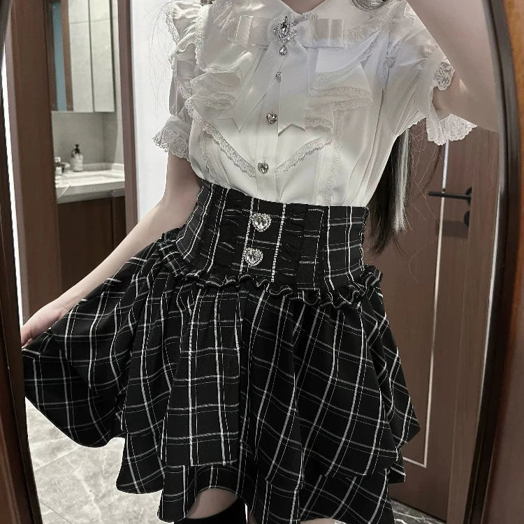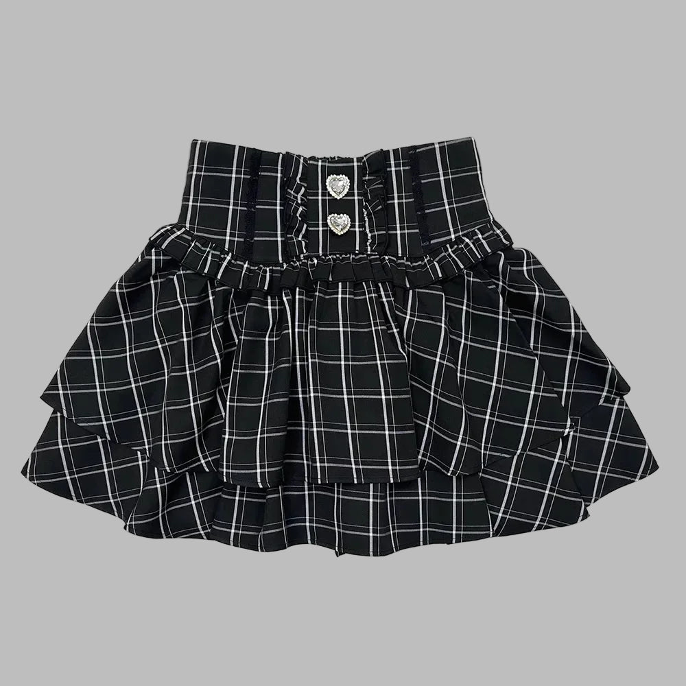 Gothic Plaid Punk Rock Skirt with Buttons and Ruffle