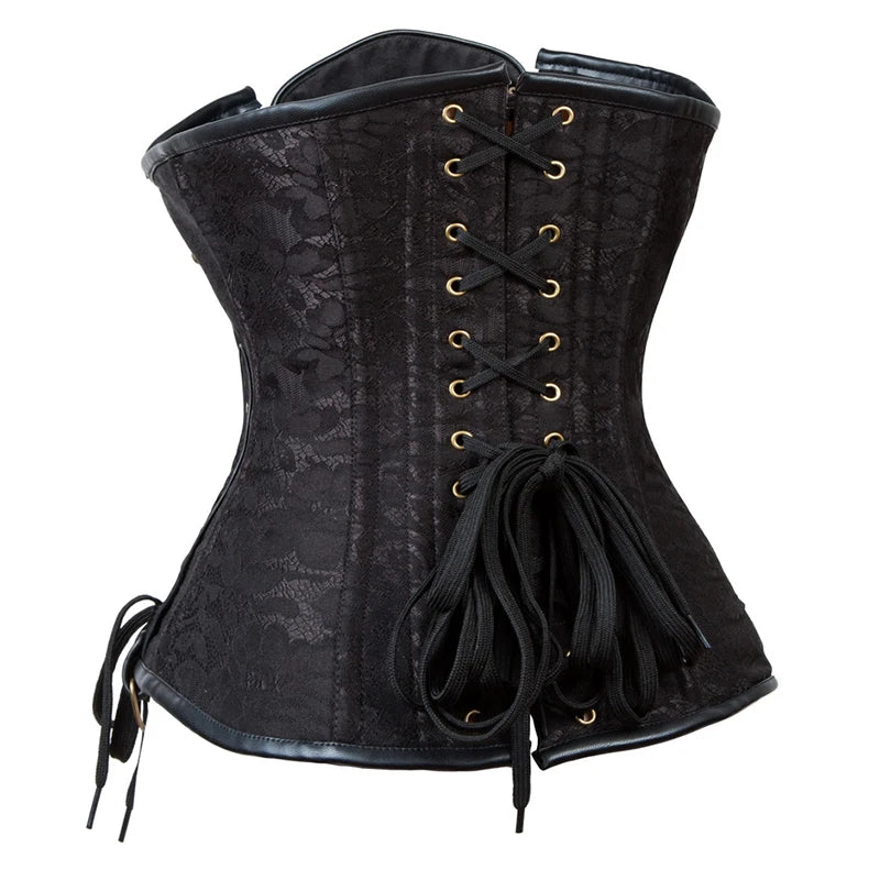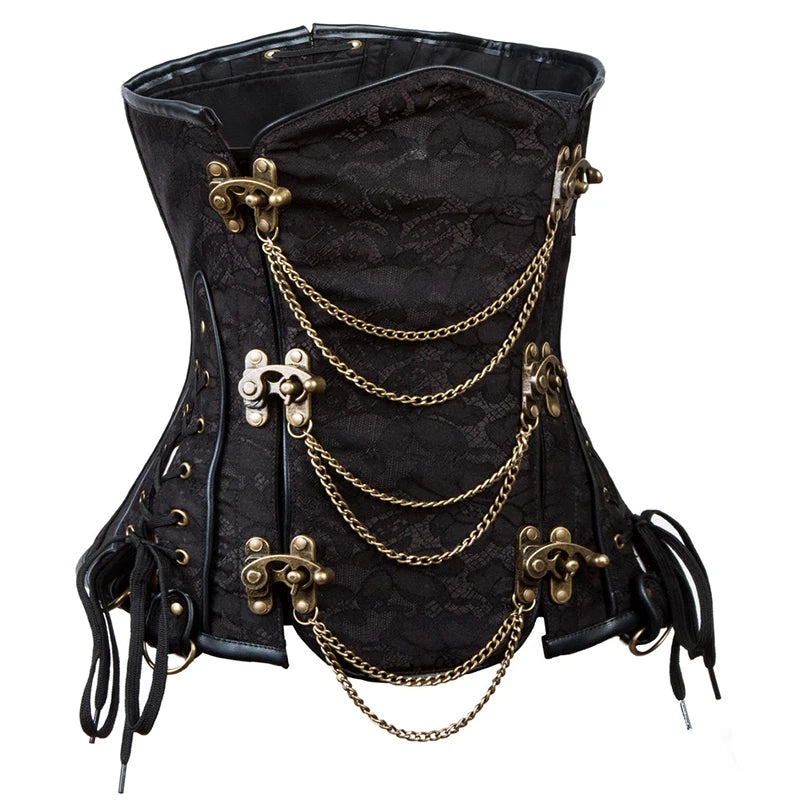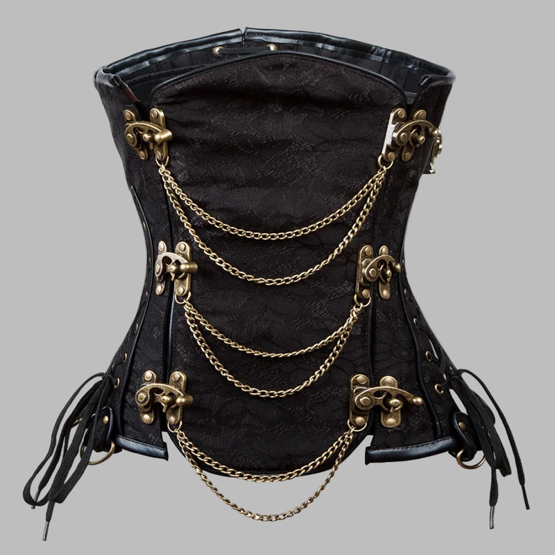 Punk Gothic Black Corset with Chains and Gold Buckles Steampunk