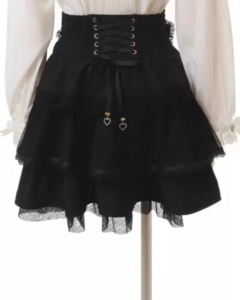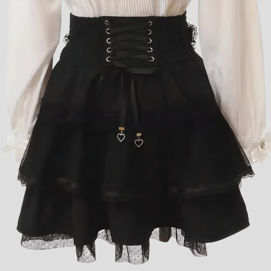 Gothic Rock Skirt with Pearl Chain and Ruffles